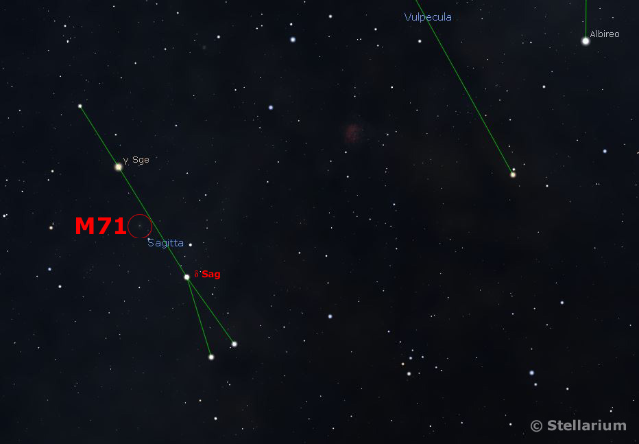 M71 is a very loosely concentrated globular cluster in the constellation of Sagitta.