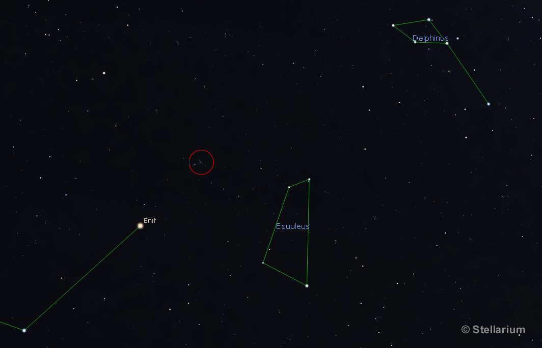M15 is located about 4¼° from the Enif (ε Peg) (at the 'head' of Pegasus) in the direction of Delphinus.