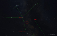 NGC6760 is located about 4° from Almizan I (δ Aql), roughly 1½ / 1¾° from the Mag. 5.1 stars 21 Aql & 23 Aql.