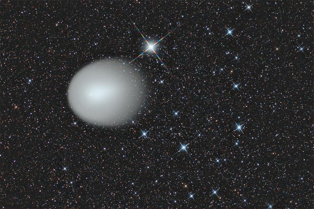This is a periodic comet with an orbital period of 6.9 years and a nucleus of about 3.4km. It was discovered in 1892 by the English amateur astronomer Edwin Holmes. Although normally a very faint object, in October 2007 it temporarily brightened by a factor of half a million going from an apparent magnitude of 17 to 2.8 in the space of 42 hours.
