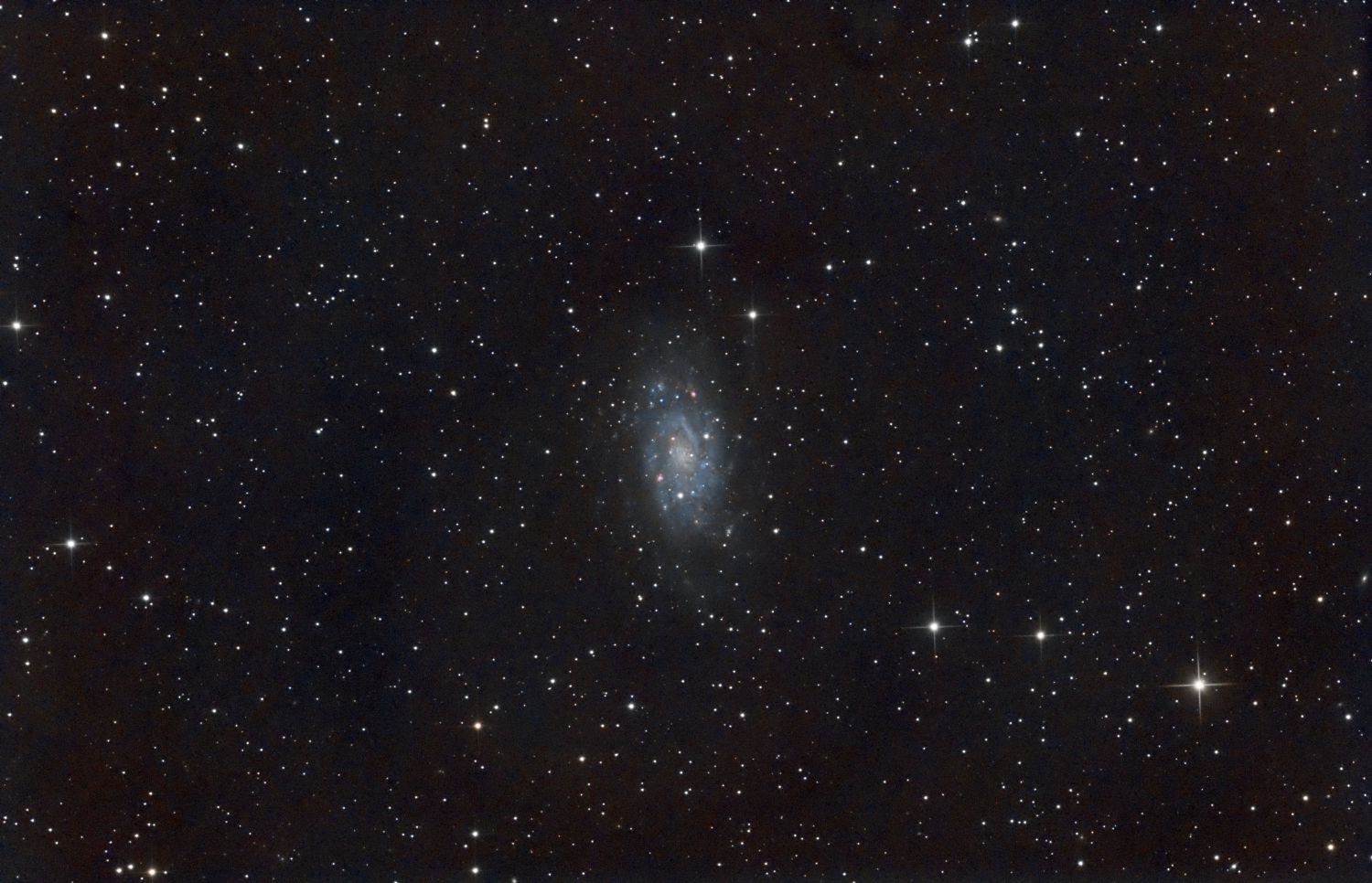 NGC2403 appears as a small faint intermediate spiral galaxy in Camelopardalis, although it is of a similar size to M33. The galaxy forms part of the M81 cluster & is approx 7-8 million light years away.