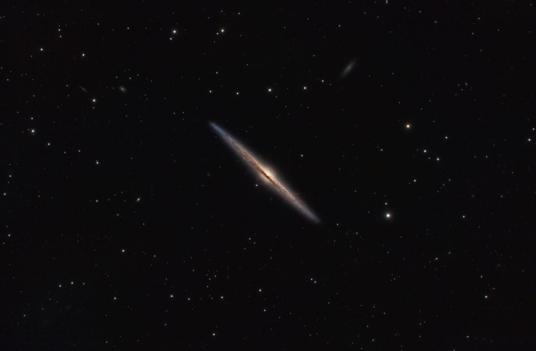 Although from Earth NGC4565 appears edge-on, it is known to be a giant spiral galaxy and is approximately 30 - 50 million light years away in the constellation of Coma Berenices.