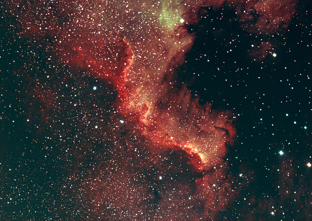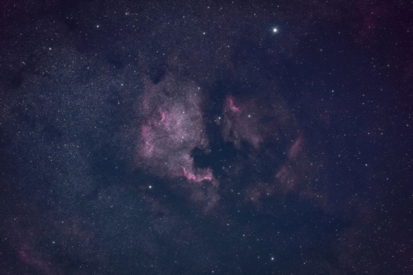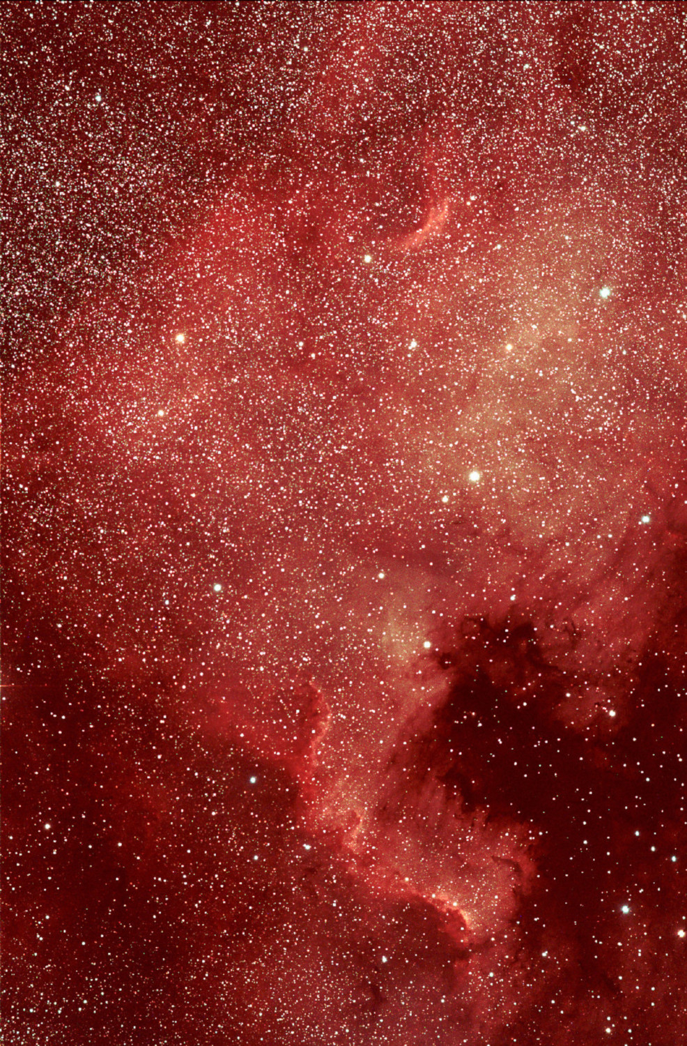 NGC7000 - the North American nebula, is a large HII emission nebula about 2 × 3° in size, situated in the constellation of Cygnus and located 2,590 light-years from Earth.