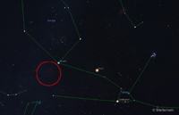 SH2-240 - the Spaghetti Nebula (also known as Simeis 147), is a very faint large supernova remnant on the border between Auriga and Taurus. It is approx 3 ° across and roughly 3,000 light-years from Earth. It was formed about 40,000 years ago when a large star went supernova. The explosion left behind a pulsar in the nebula core which emits a strong radio signal.