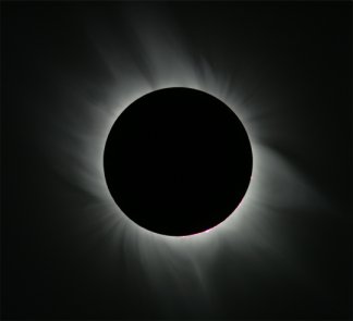 During a Total or Annular eclipse the point where the Sun and Moon first appear to meet is known as 'first contact'. When the Moon is completely in front of the Sun, 'second contact' occurs and and totality begins. A 'diamond ring' effect is seen as the the Sun's photosphere is nearly obscured. There then follows a phenomena called Baily's beads, where the rough topography of the Moon allows 'beads' of sunlight to shine through in gaps at the edge of the Moon. In some photographs, you may also see hints of red prominences at the edges of the Sun, plus the outer corona. As the eclipse continues, the Moon then reaches the other side of the Sun & 'third contact' is achieved. The sky will then gradually brighten again, until the 'fourth contact' when the Sun is once again fully visible.