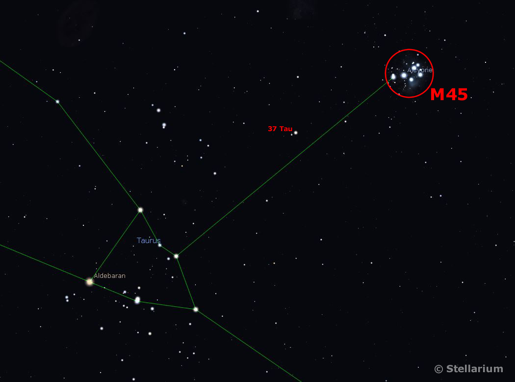 Situated in the constellation of Taurus, the cluster is naked-eye visible, although with the light pollution in Leeds it appears as a faint fuzzy patch.