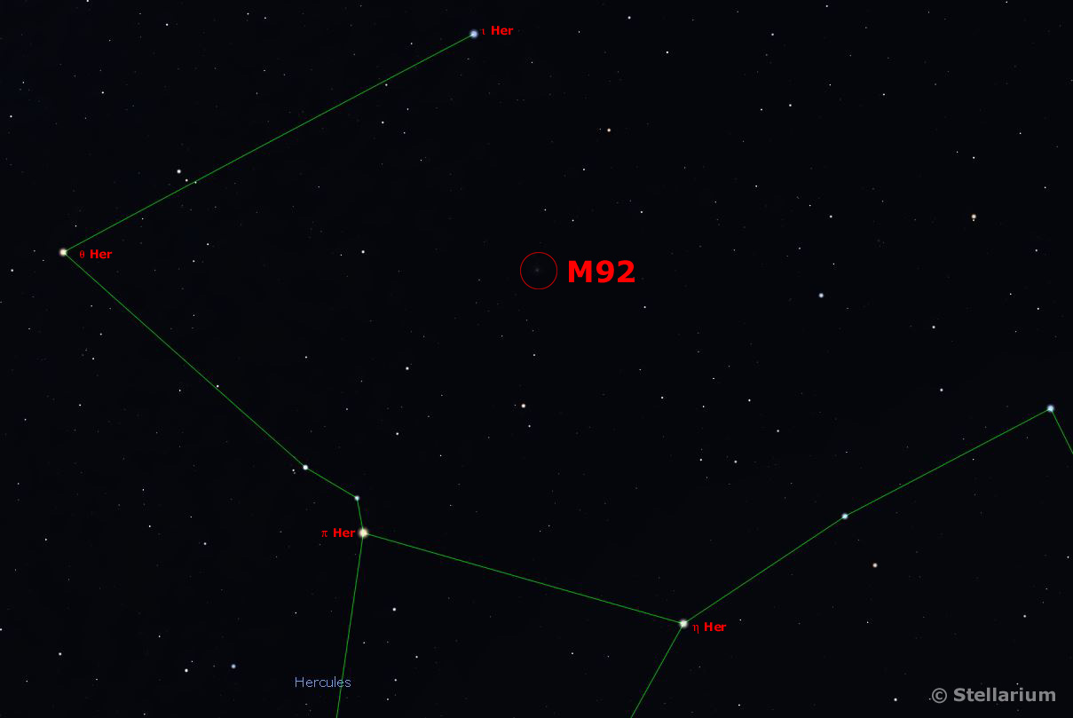 M92 is one of the brightest globular clusters although often overlooked in favour of M13 which also lies in the constellation of Hercules.