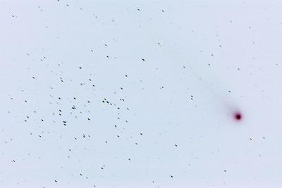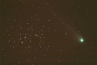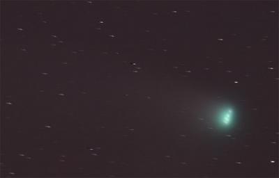 If the Comet moves closer to the Sun, it may develop a large visible tail of up to 1 AU long. The tail actually consists of two tails. There is a gas tail or an ion tail which appears to point away from the Sun, and a dust tail which lies behind the Comet in the wake of it's path.