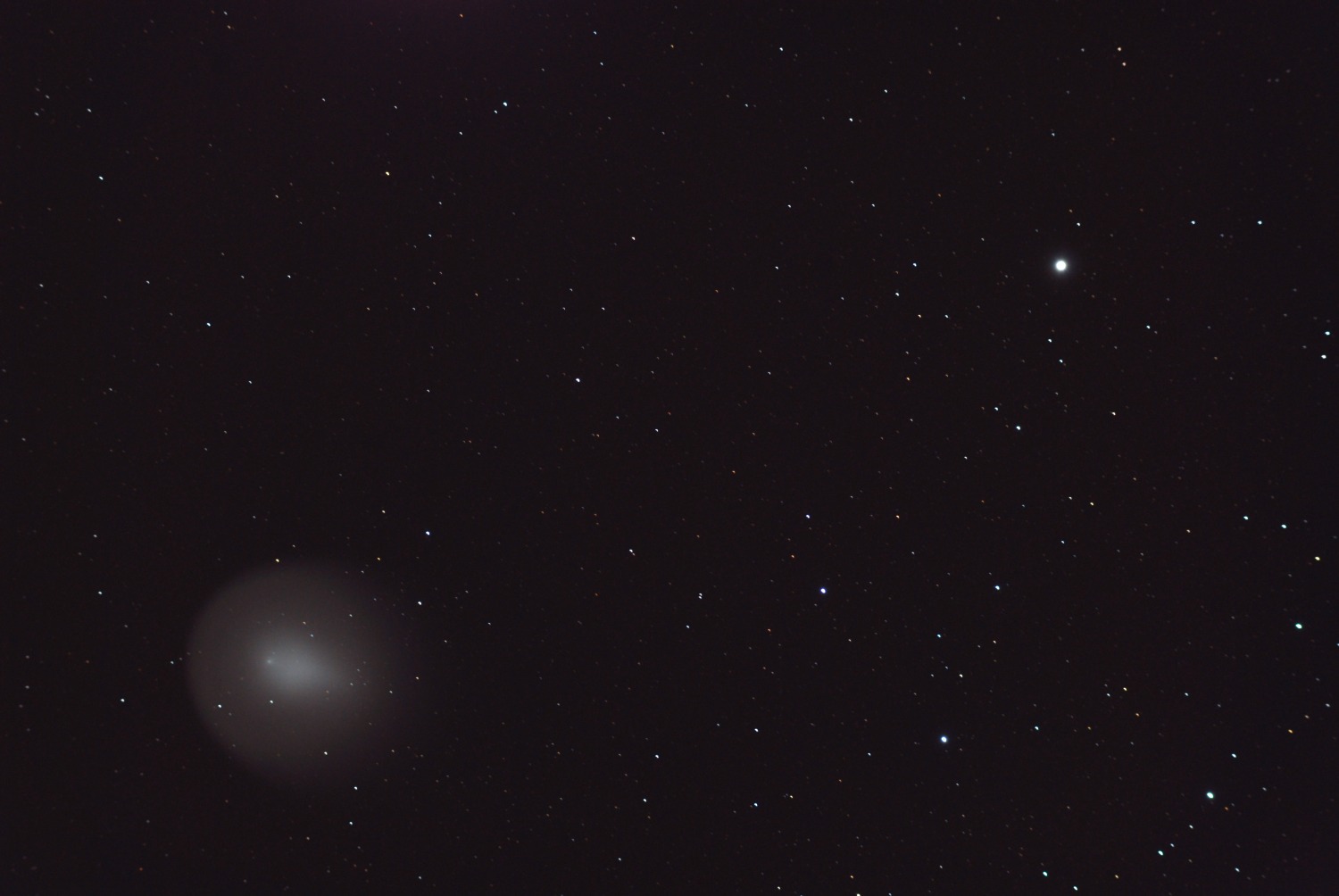 This is a periodic comet with an orbital period of 6.9 years and a nucleus of about 3.4km. It was discovered in 1892 by the English amateur astronomer Edwin Holmes. Although normally a very faint object, in October 2007 it temporarily brightened by a factor of half a million going from an apparent magnitude of 17 to 2.8 in the space of 42 hours.