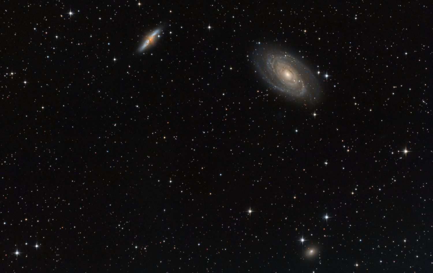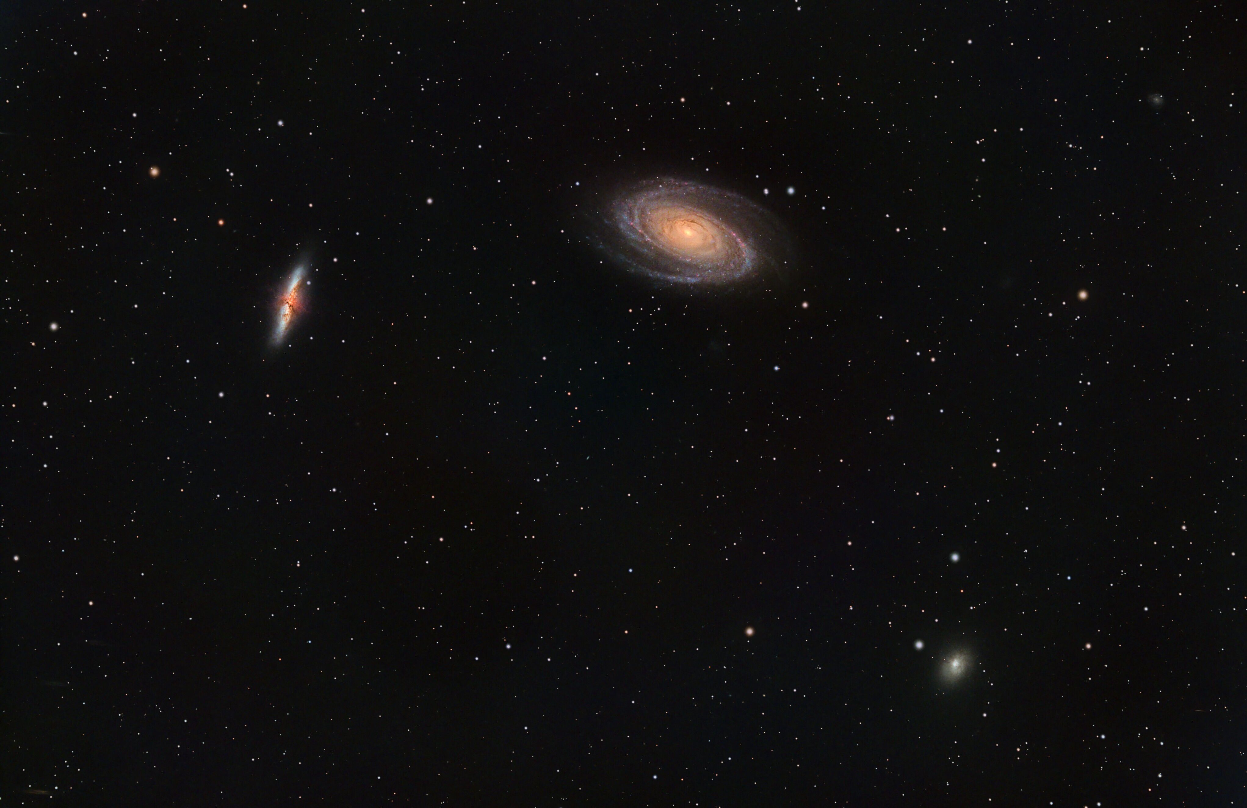 M81 - Bode's Galaxy, is a grand design spiral Galaxy about 12 million light-years from Earth and is named after the German astronomer Johann Elert Bode, who discovered it in 1774. It was also the first spiral galaxy in which rotation of it's arms was detected thorugh spectroscopic analysis, when Maximilian Wolf discovered the linear rotational velocity at the edge of the galaxy to be approx. 300 km/s.