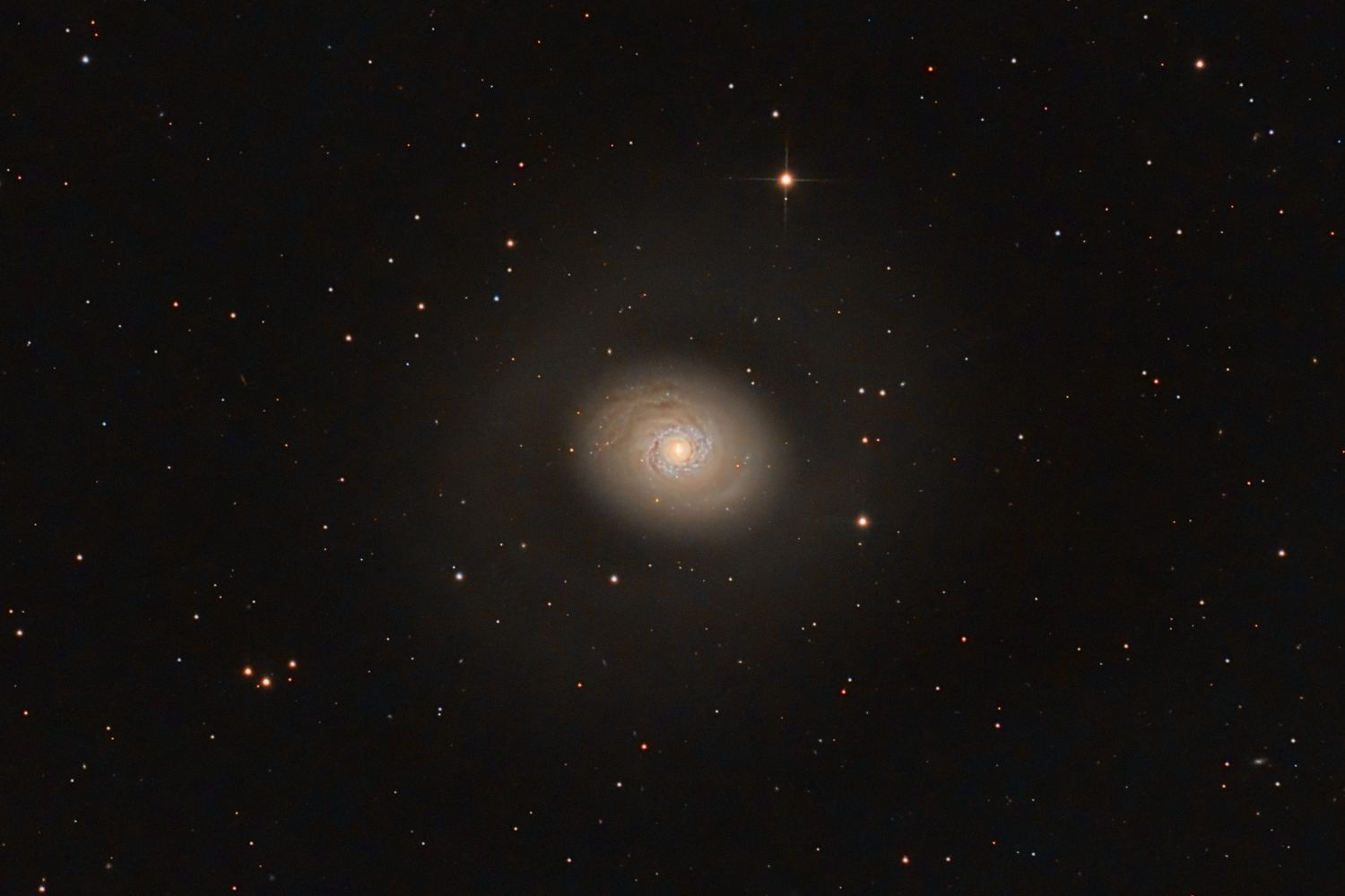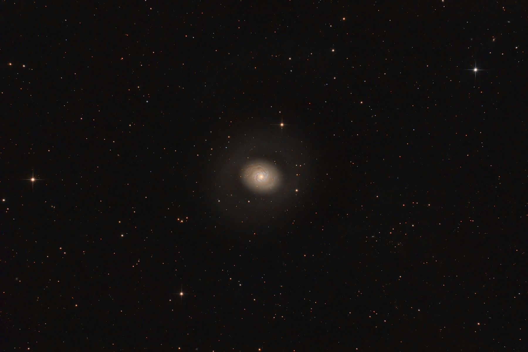 M94, sometimes nicknamed the "Croc's Eye Galaxy", is an unusal double-ringed spiral galaxy in the constellation of Canes Venatici. The inner ring with a diameter of about 5,400 light years, is a site of strong star formation, which is driven by gas forced into the ring by the galaxies inner oval-bar like structure. The much fainter outer ring has a diameter of about 45,000 light years and contains approx 23-25% of the galaxy mass & forms approx 10% of the new star formation. The outer ring has recently been shown to be a continuation of the galaxies spiral arms.