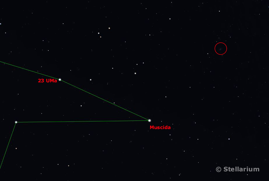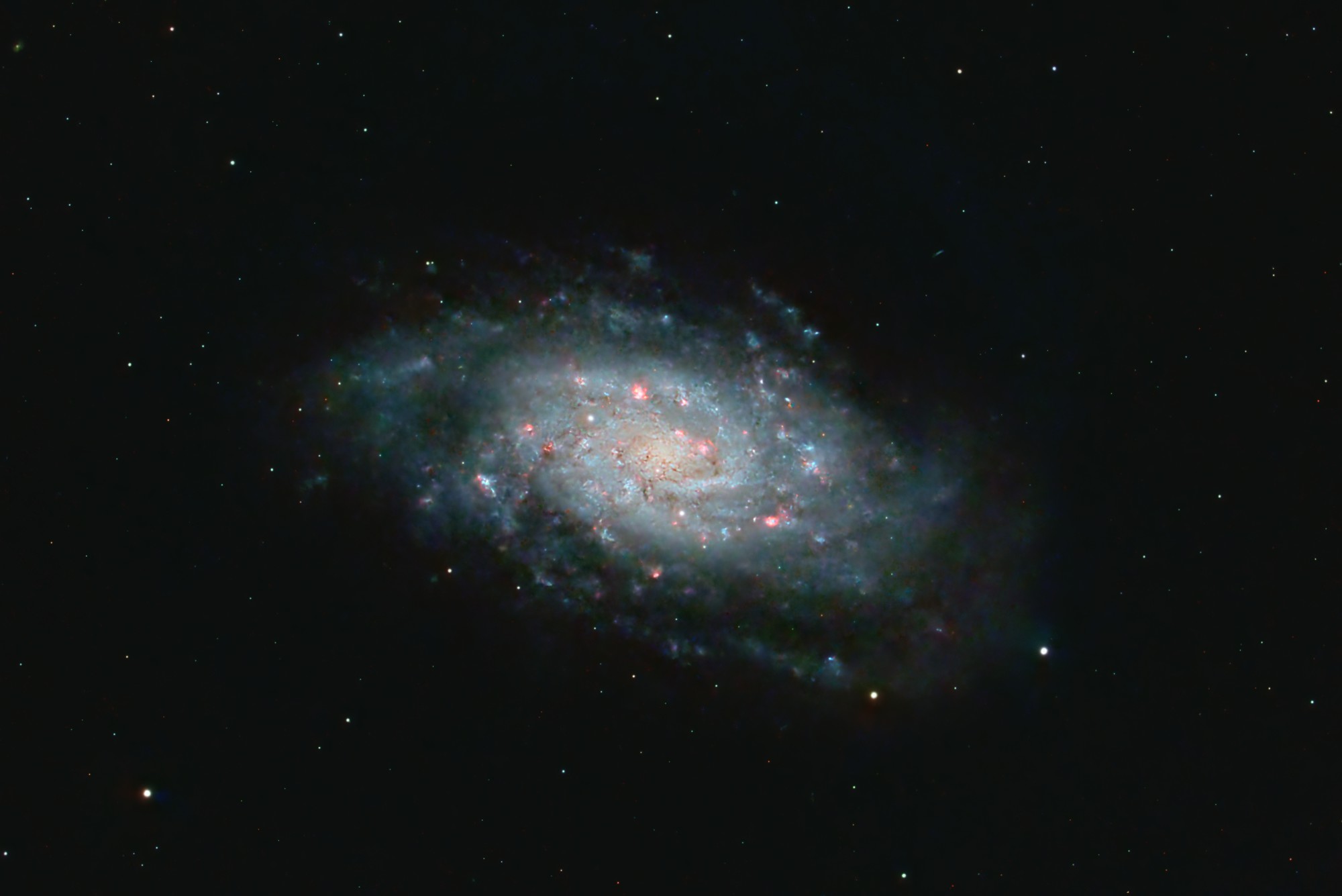 NGC2403 appears as a small faint intermediate spiral galaxy in Camelopardalis, although it is of a similar size to M33. The galaxy forms part of the M81 cluster & is approx 7-8 million light years away.