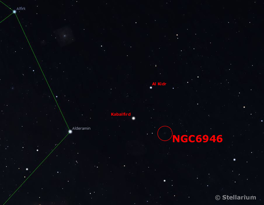 NGC6946 - the Fireworks Galaxy, is an intermediate spiral galaxy which gets its name from the relatively frequent super novae that have been observed in it's arms. (Ten have been observed in the last century, with the latest discovered in 2017 by an amateur astronomer in Utah)