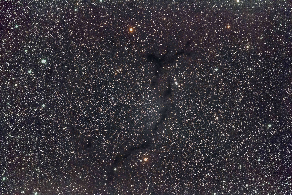 The nebula is part of the Milky Way molecular cloud and is up to 1,200 light years away. The designation B150 refers to it's Barnard number - one of 182 dark markings catalogued by E.E. Barnard in the early 20th century.