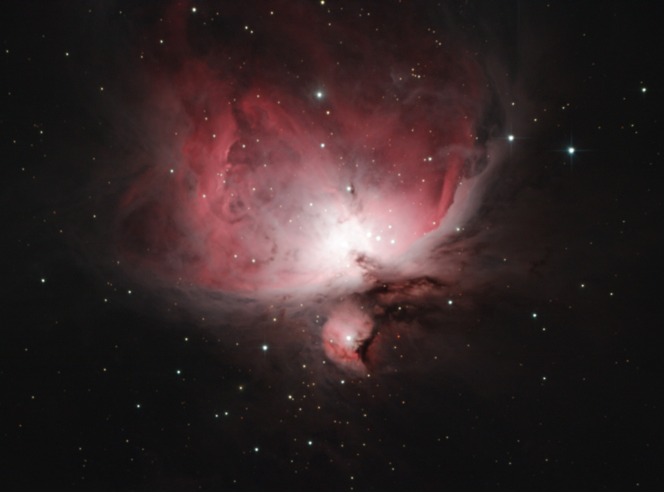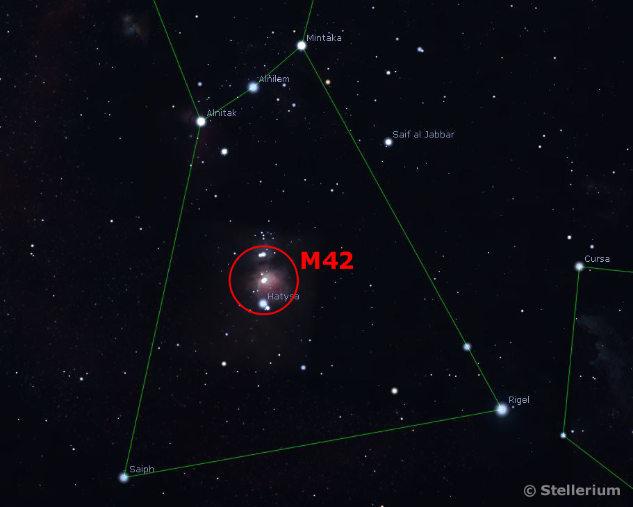 M42 - the Orion Nebula is a splendid diffuse nebula in the Milky Way. Located at a distance of 1,344 light years, it is the closest region of massive star formation to Earth. It is estimated to be 24 light years across and has approx. 2,000 × the mass of the Sun.