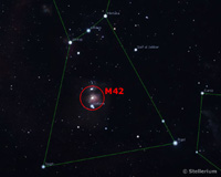 In James Clark's image above, the Running Man nebula can also be seen on the left of M42. This is a reflection nebula 1,460 light years away, and is actually comprosed of three nebulae: NGC1973, NGC1875 & NGC1977.