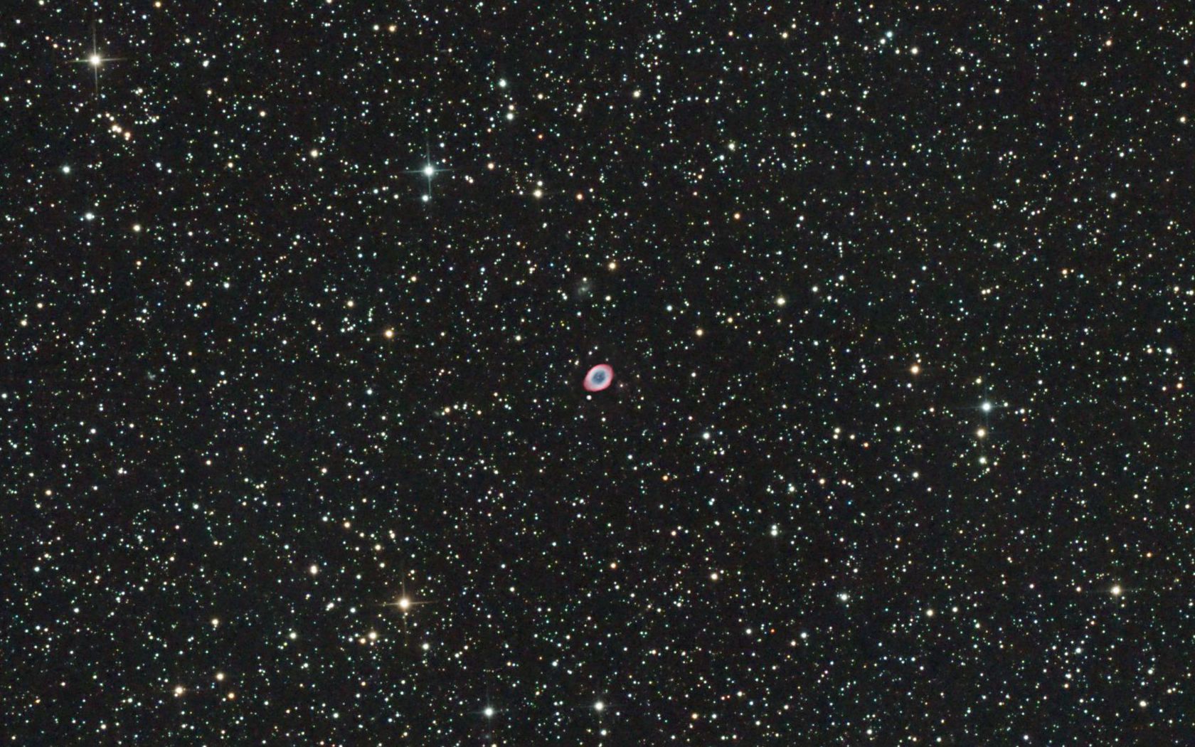 M57 has a very wide range of brightness levels, making it difficult to process. Outside of the main nebula there is a faint outer OIII shell which can just be seen in the 2022 image. The small barred spiral galaxy which can be seen near the nebula is IC1296/PGC62532 and is approx 245 million light years away.