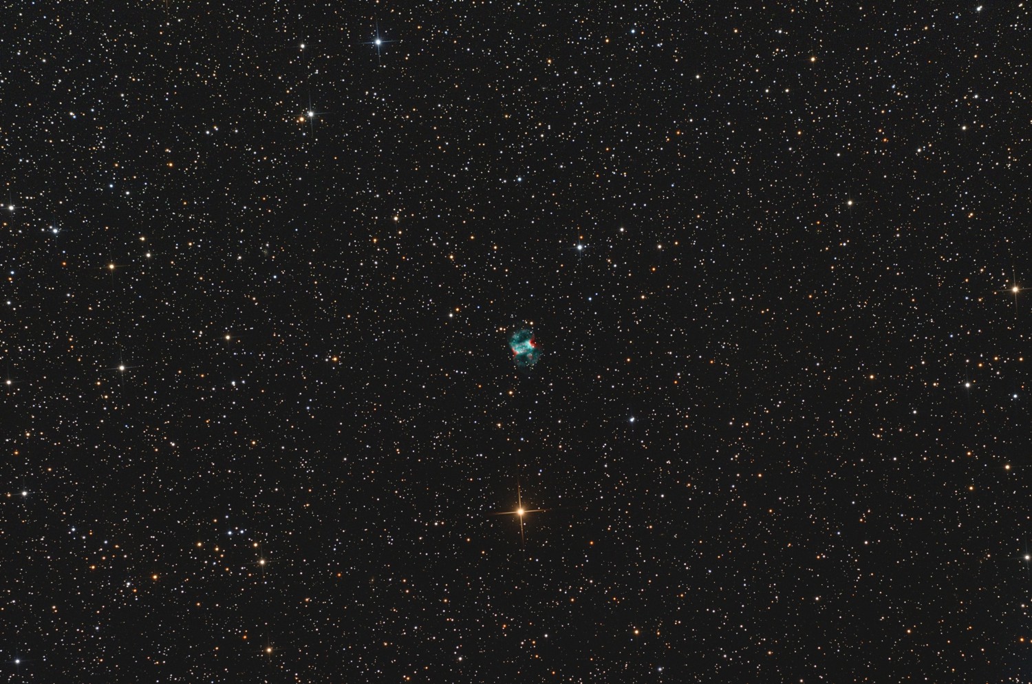 M76 - the Little Dumbbell Nebula, is a small planetary nebula, about 2,500 light years away, and situated between Andromeda and Cassiopia in the corner of the Perseus constellation.