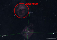 NGC7000 - the North American nebula, is a large HII emission nebula about 2 × 3° in size, situated in the constellation of Cygnus and located 2,590 light-years from Earth.