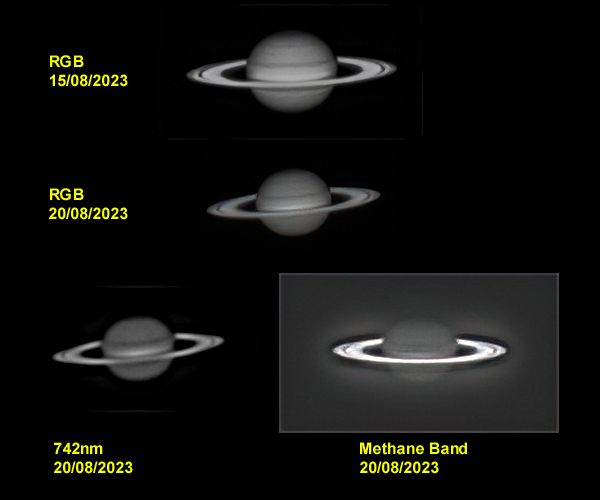 The prominent ring structure, which on a good night is visible in even small 100mm aperture scopes, is probably one of the most impressive sights for first time astronomers. The ring system is mostly comprised of ice particles, with small amounts of rocky material and dust. They extend from 6,630 to 120,700 km from the planet and have an average thickness of about 20 metres. At least 82 moons orbit Saturn and the tidal interactions help to maintain them.